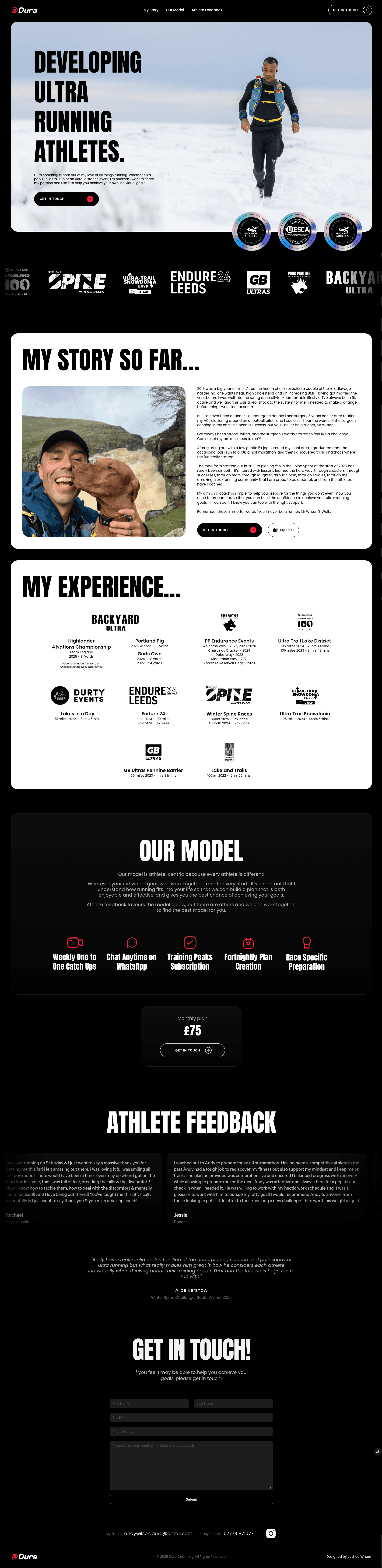 Dura Coaching was born out of my love for all things running. From the excitement of lining up at a local park run to the solitude of exploring winding trails, and even the mental and physical challenge of ultra-distance events—I’m hooked. Running has been a constant source of energy, growth, and inspiration in my life, and it’s a passion that I can’t help but want to share with others.